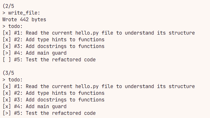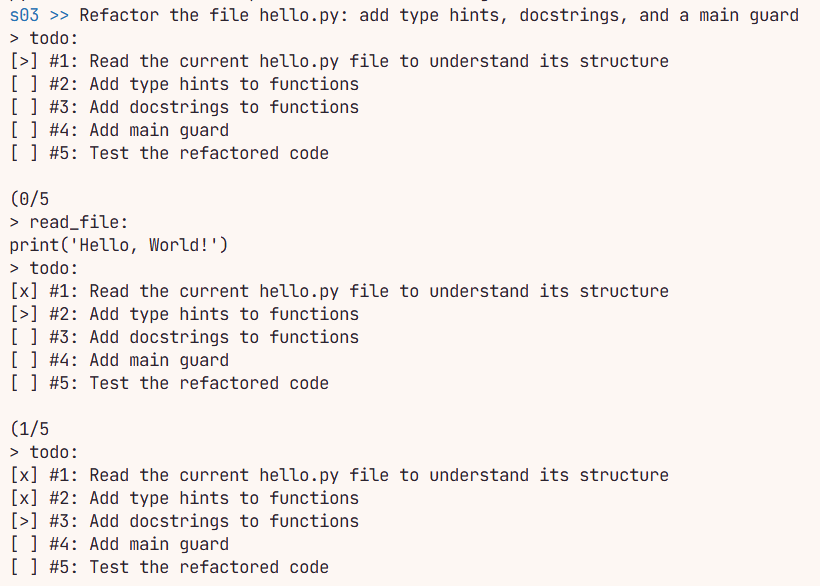可以看到update方法最后还会进行render方法之后返回 LLM ,这是为了保证待办事项的最新状态会返回给 LLM ,在 LLM 上下文中位于最新的区域中,不至于遗忘和跑偏,让 LLM 去处理规划中当前应该做的任务。