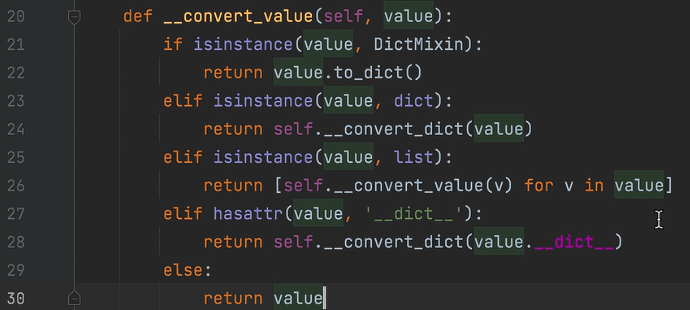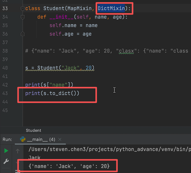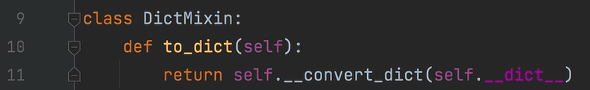 例如,实现一个将类转换为字典的功能,由于这个功能的通用性,可以单独抽离成一个Mixin类中实现这个功能。